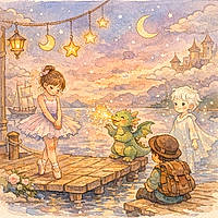 Thaïs la ballerine danse dans la prairie pour aider les étoiles à briller et vit une aventure magique.