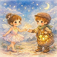 Ils voyagent dans la prairie. Ils avancent doucement. Ils entendent un rire étrange. Ils trébuchent près d’une clairière. Là, ils trouvent un collectionneur d’étoiles.